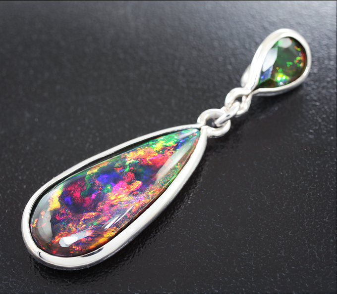 Кулон с кристаллическими черными опалами