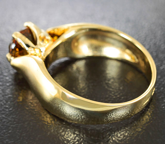 Вашему вниманию предлагается кольцо из лимонного золота 585 пробы с редким мали гранатом и золотистыми сапфирами! Диаметр дополнительной инкрустации 1,5 мм. Площадка 9 х 7 мм, высота 7 мм. Вес изделия 4,8 г. Размер 16,5. Ниже приводятся ювелирные характеристики.
