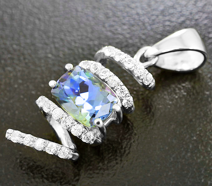 Вашему вниманию предлагается кулон из белого золота 585 пробы с танзанитами и лейкосапфирами! Диаметр дополнительной инкрустации 1,5 мм. Размеры кулона с петлей 30 х 10 мм. Вес изделия 3 г. Ниже приводятся ювелирные характеристики танзанита.