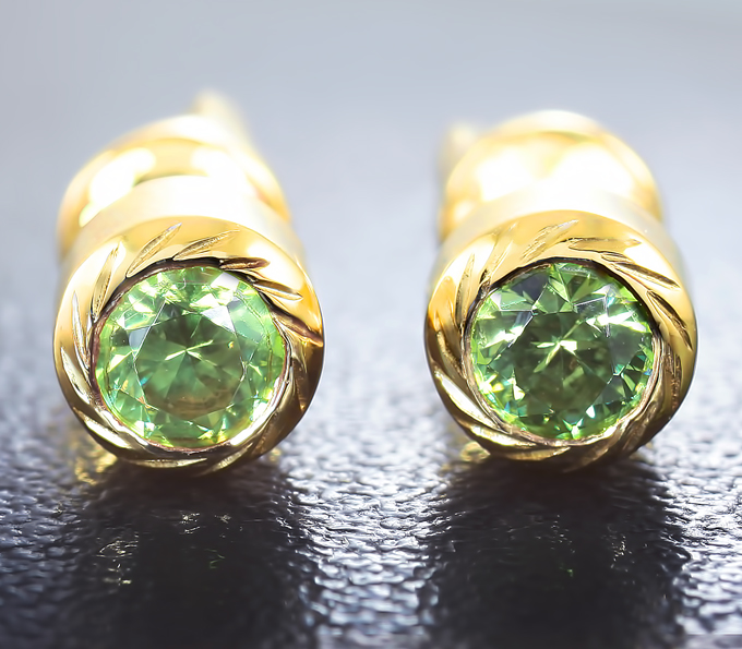 Вашему вниманию предлагается комплект (пусеты + кулон) из желтого золота 585 пробы с уральскими демантоидами! Вес комплекта 2,9 г.