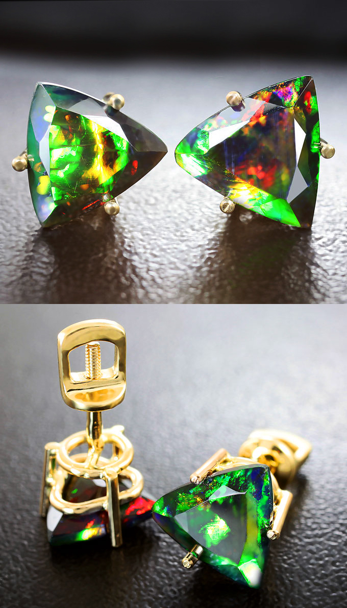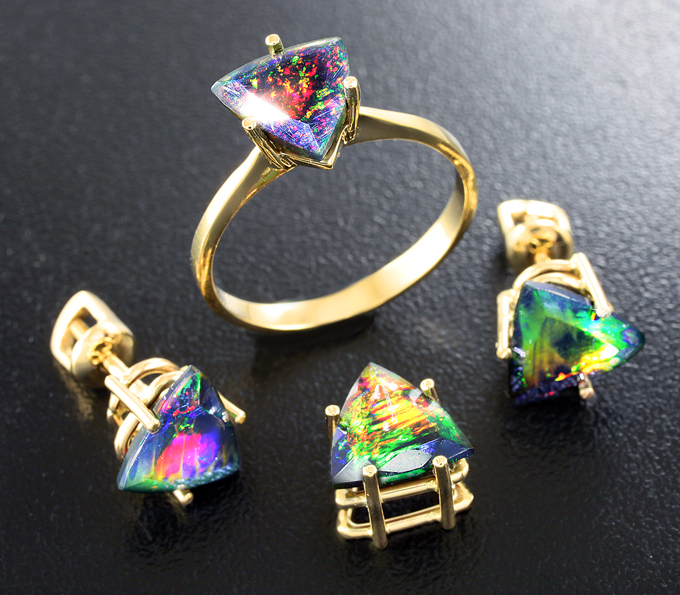 Комплект с ограненными черными опалами