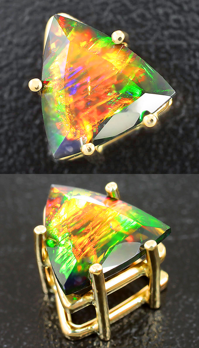 Вашему вниманию предлагается комплект (кольцо + пусеты + кулон) из желтого золота 585 пробы с ограненными черными опалами массой 4,62 карат! Размеры вставок 8 х 8 мм и 9 х 9 мм. Вес комплекта 5,6 г.