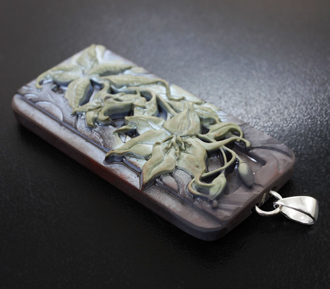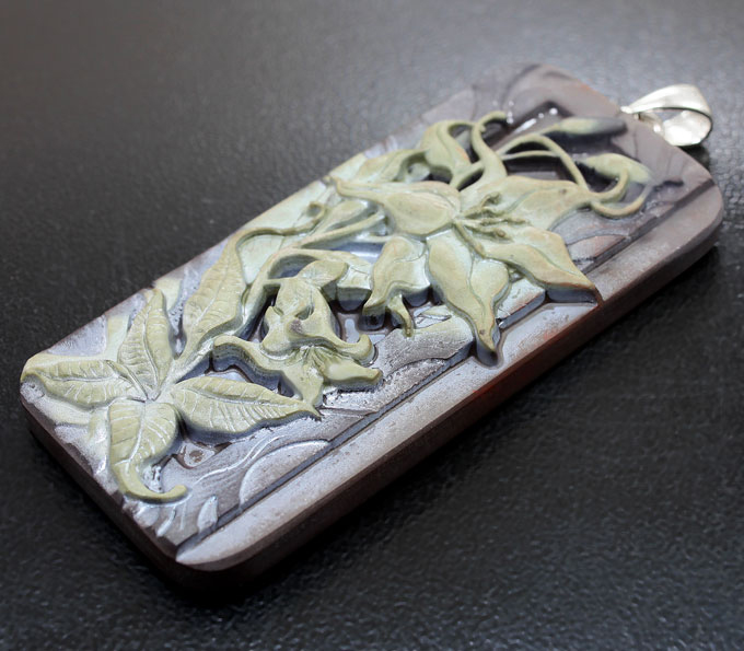 Камея-подвеска «Лилии» из цельной яшмы