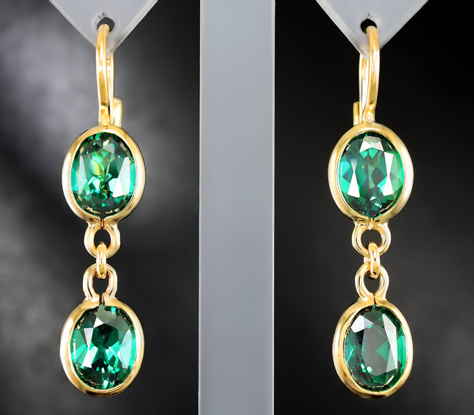 Вашему вниманию предлагаются серьги из желтого золота 585 пробы с зелеными топазами! Размеры серег с петлей 39 х 9 мм. Вес пары 6,1 г. Ниже приводятся ювелирные характеристики вставки.