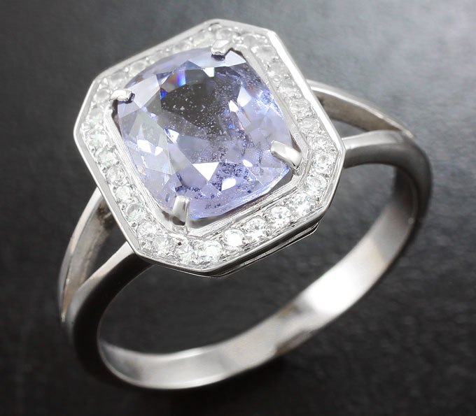 Вашему вниманию предлагается кольцо из стерлингового серебра (925 проба) c редкой пастельно-сиреневой шпинелью и бесцветными цирконами! Диаметр дополнительной инкрустации 1,1 мм. Площадка 13 х 11 мм, высота 5 мм. Вес изделия 3,4 г. Размер 17,75. Ниже приводятся ювелирные характеристики шпинели.
