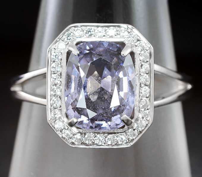 Кольцо c редкой пастельно-сиреневой шпинелью и бесцветными цирконами