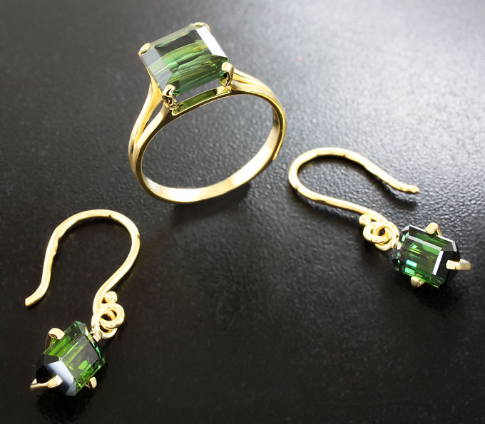 Вашему вниманию предлагается комплект (кольцо + серьги) из желтого золота 585 пробы с зелеными турмалинами! Вес комплекта 6,8 г.