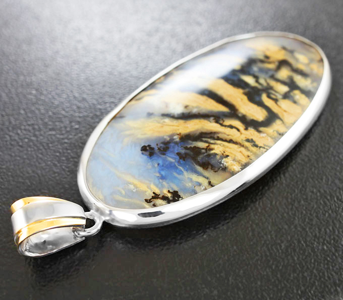 Вашему вниманию предлагается кулон из белого и желтого золота 585 пробы с дендритическим агатом! Размеры кулона с петлей 58 х 25 мм. Вес изделия 10,9 г. Ниже приводятся ювелирные характеристики вставки.