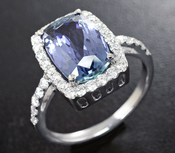 Вашему вниманию предлагается кольцо из белого золота 585 пробы с полихромным танзанитом и бриллиантами! Диаметр дополнительной инкрустации 1,5 мм. Площадка 20 х 14 мм, высота 6 мм. Вес изделия 3,8 г. Размер 16,5. Ниже приводятся ювелирные характеристики танзанита.