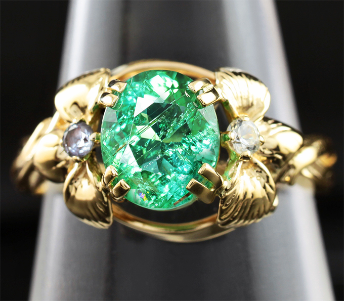 Вашему вниманию предлагается кольцо из желтого золота 585 пробы с медьсодержащим параиба турмалином и сапфирами! Диаметр дополнительной инкрустации 1,5 мм. Площадка 16 х 10 мм, высота 8 мм. Вес изделия 4,2 г. Размер 17,5. Ниже приводятся ювелирные характеристики турмалина.
