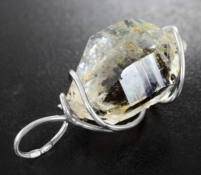 Вашему вниманию предлагается кулон из стерлингового серебра (925 проба) с кристаллом кварца с углеводородами 30,65 карат! Размеры вставки 23,4 х 17,5 х 14 мм. Размеры кулона с петлей 35 х 17 мм. Вес изделия 7,4 г.