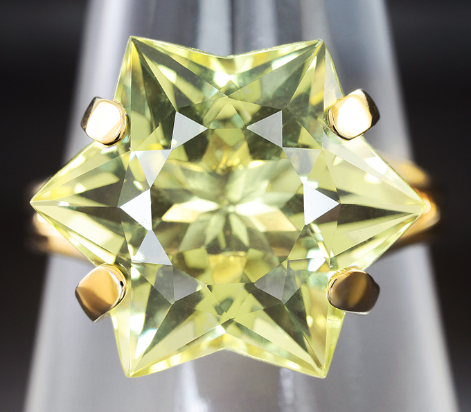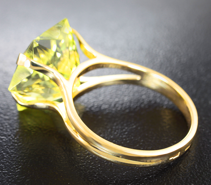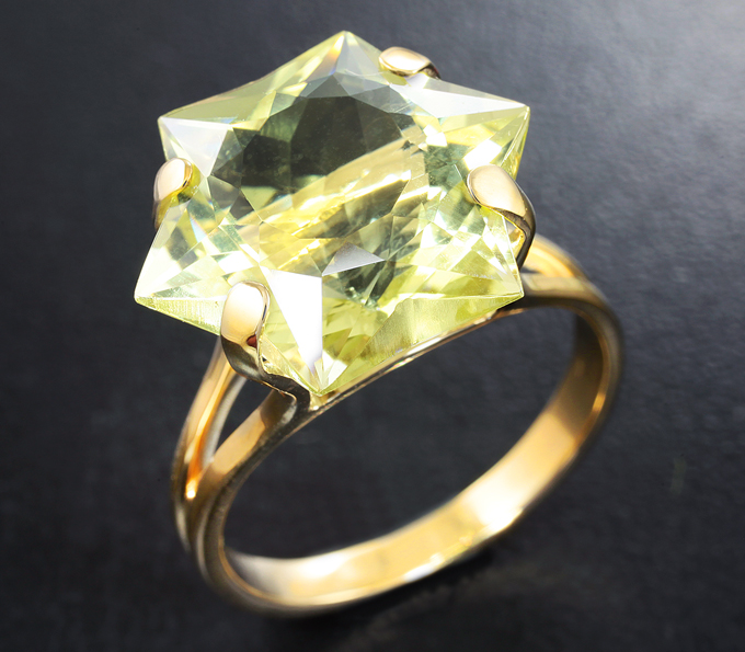 Вашему вниманию предлагается кольцо из желтого золота 585 пробы c цитрином авторской огранки! Площадка 16 х 14 мм, высота 9 мм. Вес изделия 4,4 г. Размер 17,5. Ниже приводятся ювелирные характеристики вставки.