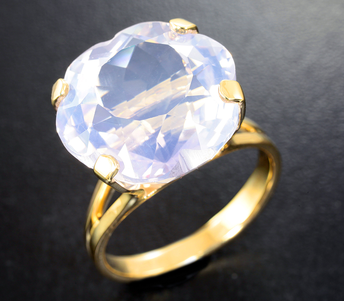 Вашему вниманию предлагается кольцо из желтого золота 585 пробы с лавандовым аметистом авторской огранки! Площадка 15,2 х 13,9 мм, высота 11 мм. Вес изделия 5,2 г. Размер 17,5. Ниже приводятся ювелирные характеристики вставки.
