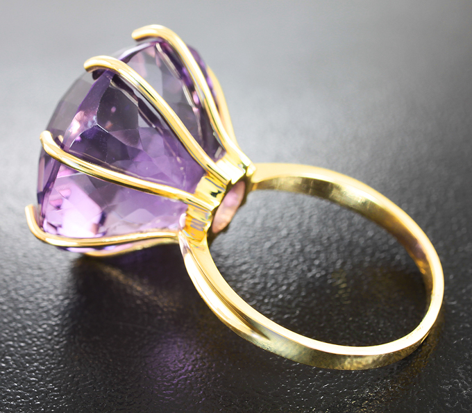 Вашему вниманию предлагается кольцо из желтого золота 585 пробы с крупным аметистом! Площадка 20 х 20 мм, высота 17 мм. Вес изделия 9,8 г. Размер 18,25. Ниже приводятся ювелирные характеристики аметист.