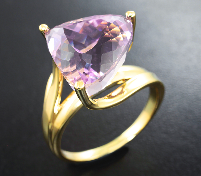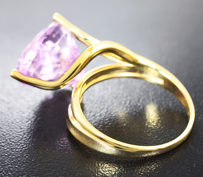 Вашему вниманию предлагается кольцо из желтого золота 585 пробы с насыщенным пурпурно-розовым кунцитом! Площадка 14 х 14 мм, высота 13 мм. Вес изделия 6,9 г. Размер 18,5. Ниже приводятся ювелирные характеристики вставки.
