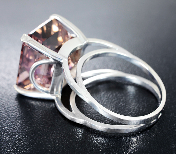 Вашему вниманию предлагается кольцо из стерлингового серебра (925 проба) c аметрином! Площадка 15 х 14 мм, высота 15 мм. Вес изделия 8,3 г. Размер 18,25. Ниже приводятся ювелирные характеристики вставки.
