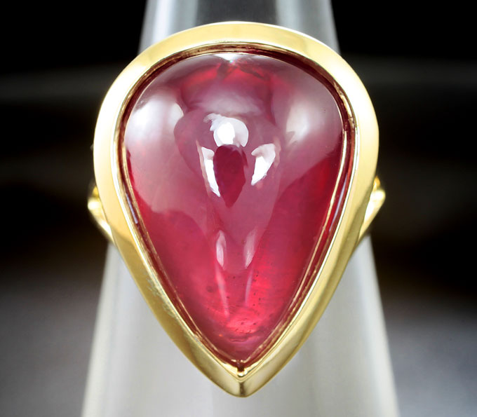Вашему вниманию предлагается кольцо из желтого золота 585 пробы с рубином массой 21,2 карата! Размеры вставки 18 х 13 мм. Площадка 22 х 17 мм, высота 9 мм. Вес изделия 7,7 г. Размер 17.
