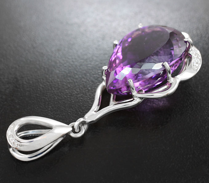 Вашему вниманию предлагается кулон из стерлингового серебра (925 проба) с аметистами и кубиком циркония! Диаметр дополнительной инкрустации 1,5 мм. Размеры кулона с петлей 58 х 24 мм. Вес изделия 11,7 г. Ниже приводятся ювелирные характеристики аметиста.