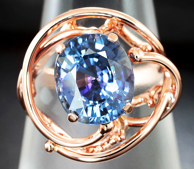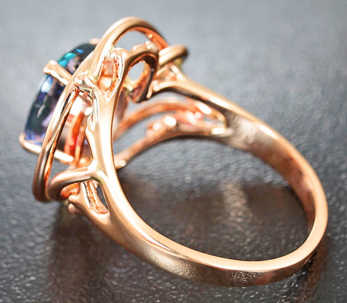 Вашему вниманию предлагается кольцо из красного золота 585 пробы с танзанитом! Площадка 19 х 18 мм, высота 7 мм. Вес изделия 6 г. Размер 18. Ниже приводятся ювелирные характеристики вставки.