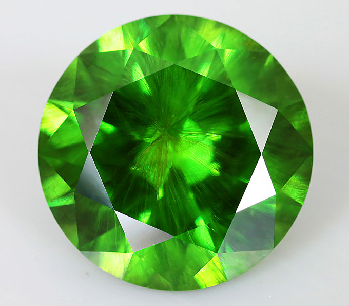 Вашему вниманию предлагается кольцо из белого золота 750 пробы с топовым уральским демантоидом гранатом, малыми демантоидами и бриллиантами! Диаметр дополнительной инкрустации 1,5 мм и 2 мм. Площадка 24 х 18 мм, высота 8 мм. Вес изделия 8,2 г. Размер 17. Ниже приводятся ювелирные характеристики крупного демантоида.