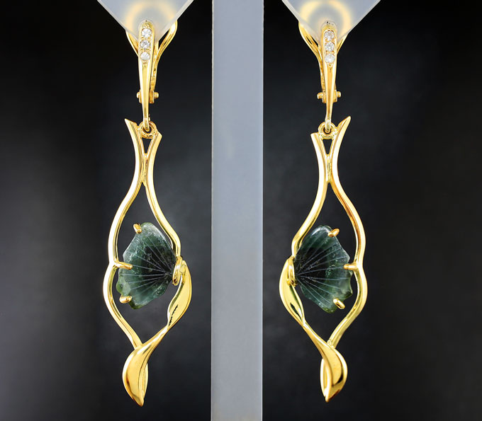 Вашему вниманию предлагаются серьги из стерлингового серебра (925 проба) с резными турмалинами и кубиком циркония! Диаметр дополнительной инкрустации 1,5 мм. Размеры серег с петлей 59 х 14 мм. Вес пары 7,4 г. Ниже приводятся ювелирные характеристики турмалинов.