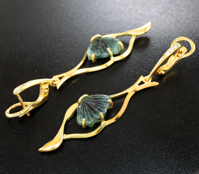 Серьги с резными турмалинами и кубиком циркония