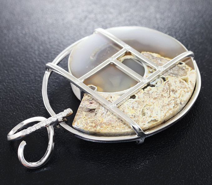Комплект с агатизированными слайсами моллюска и бриллиантами