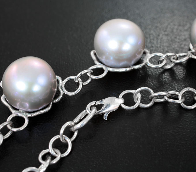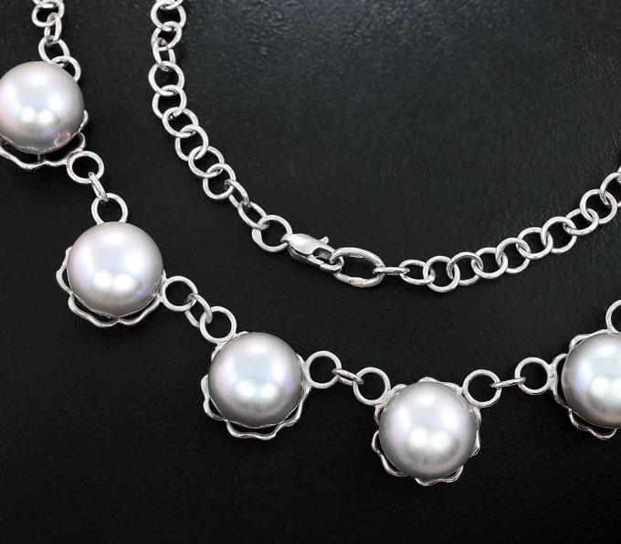 Вашему вниманию предлагается колье из стерлингового серебра (925 проба) с цветным морским жемчугом массой 56,59 карата! Диаметр вставок 12 мм. Длина по цепочке 590 мм. Вес изделия 25,5 г.
