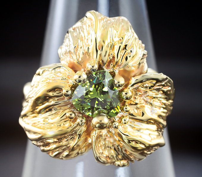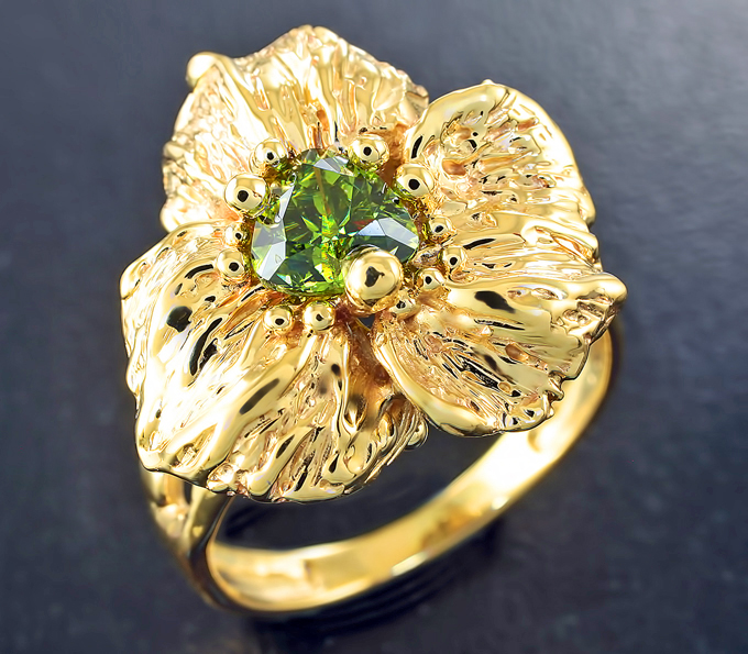 Вашему вниманию предлагается кольцо из желтого золота 585 пробы с уральским демантоидом! Площадка 18 х 17 мм, высота 7 мм. Вес изделия 5,18 г. Размер 17. Ниже приводятся ювелирные характеристики вставки.