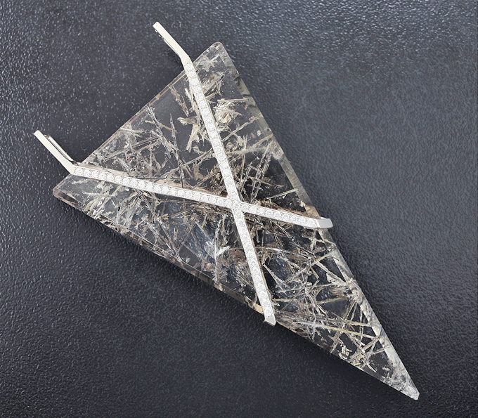 Вашему вниманию предлагается кулон из стерлингового серебра (925 проба) с кварцем с джемсонитом и бриллиантами! Диаметр дополнительной инкрустации 1,1 мм. Размеры кулона с петлей 75 х 38 мм. Вес изделия 20,54 г. Ниже приводятся ювелирные характеристики кварца.