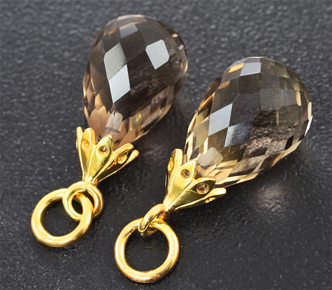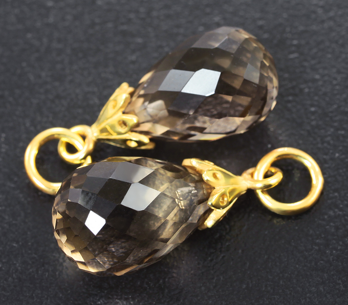 Вашему вниманию предлагаются подвесы для серег из стерлингового серебра (925 проба) с дымчатым кварцем! Изделие позолочено. Размеры подвесов 25 х 10 мм. Вес пары 4,4 г. Ниже приводятся ювелирные характеристики вставок.