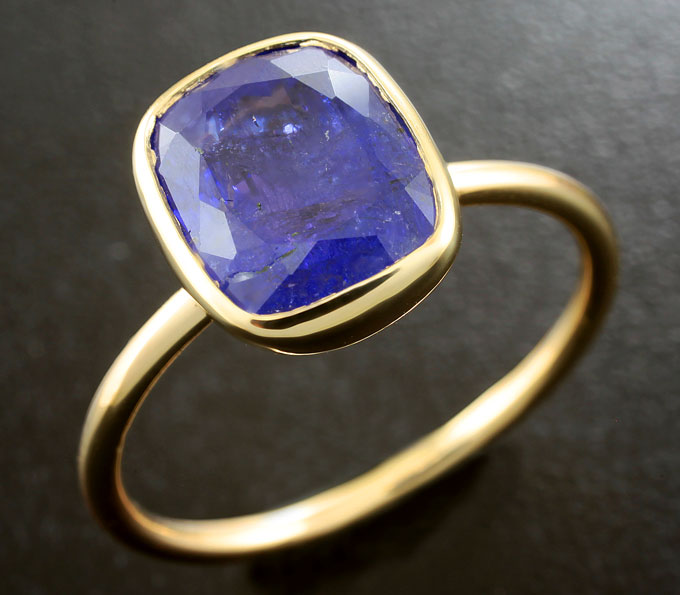 Вашему вниманию предлагается кольцо из желтого золота 585 пробы с насыщенным танзанитом! Площадка 11 х 9 мм, высота 5 мм. Вес изделия 3 г. Размер 18. Ниже приводятся ювелирные характеристики вставки.