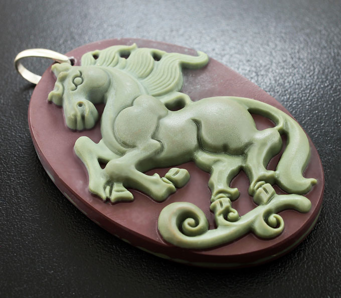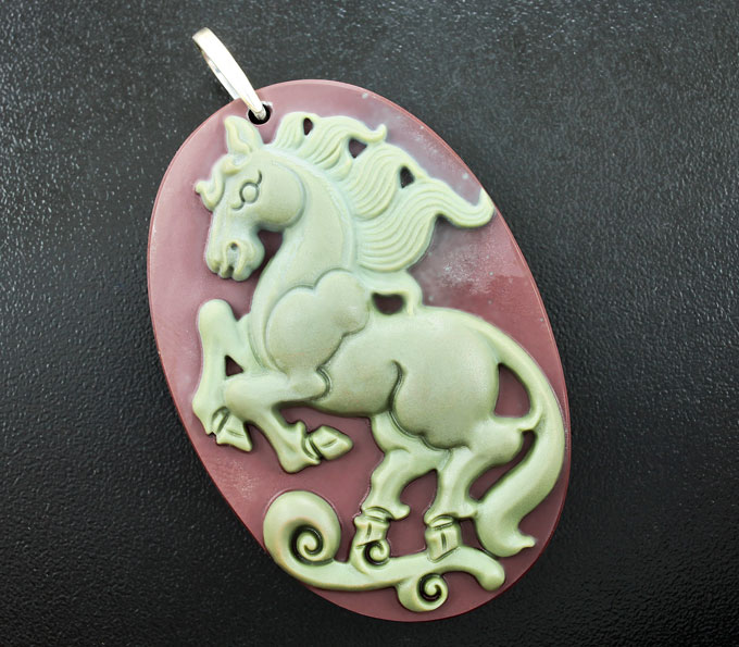 Камея-подвеска «Персидский конь» из цельной яшмы
