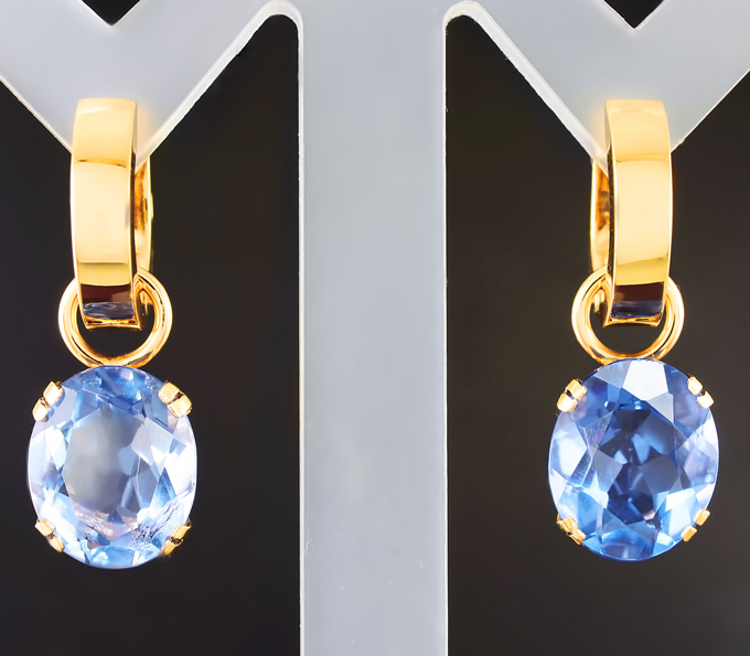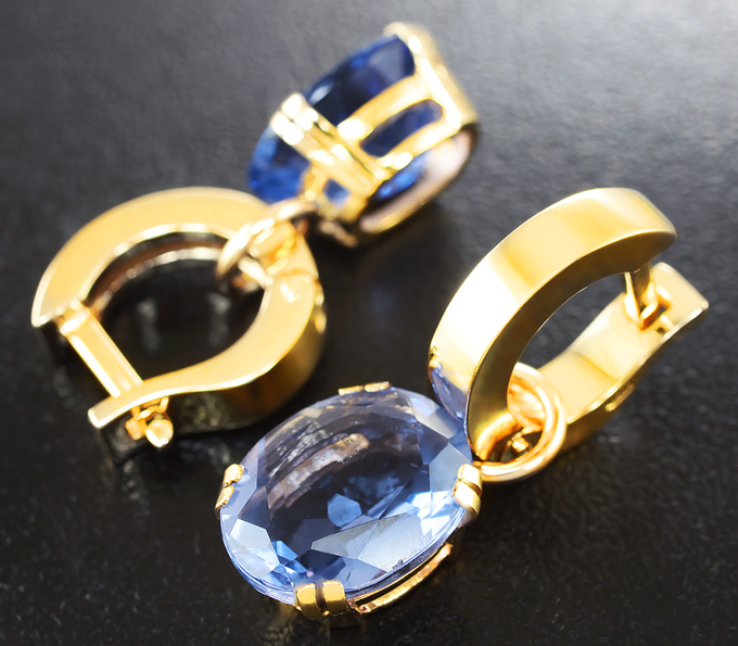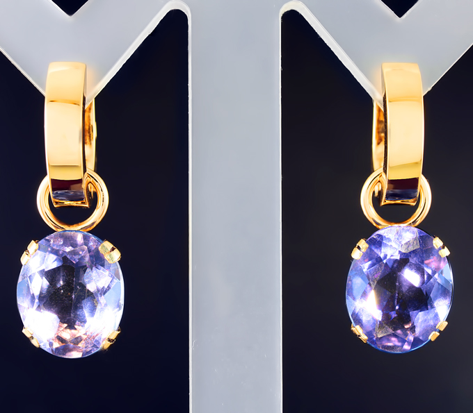 Вашему вниманию предлагаются серьги из желтого золота 585 пробы с флюоритами! При смене освещения камни меняют цвет с синего на пурпурный. Размеры серег с петлей 25 х 9 мм. Вес пары 7,3 г. Ниже приводятся ювелирные характеристики вставок.