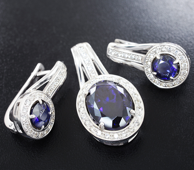 Вашему вниманию предлагается комплект (серьги + кулон) из белого золота 585 пробы с иолитом, кианитами и бесцветынми цирконами! Диаметр дополнительной инкрустации 1,5 мм. Вес комплекта 17,7 г.