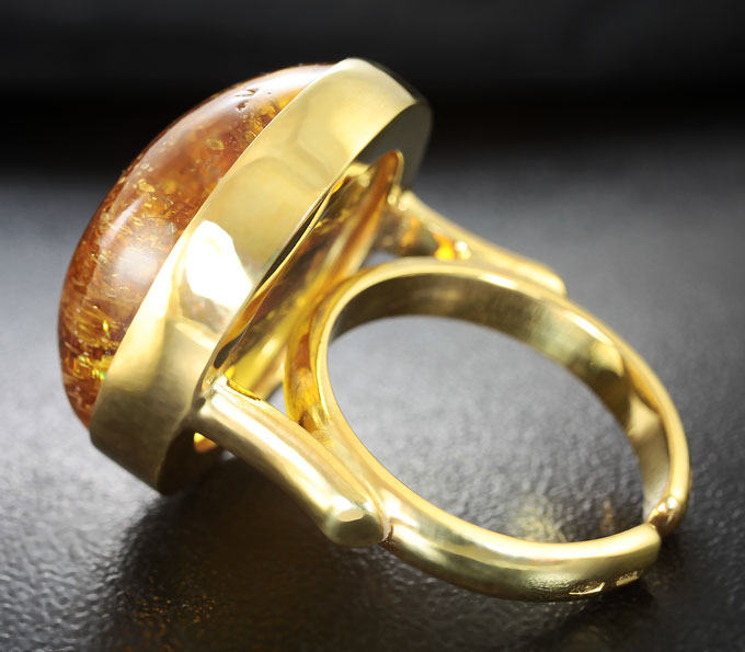 Вашему вниманию предлагается кольцо из стерлингового серебра (925 проба) c бирманский янтарем с крылом насекомого! Изделие позолочено. Площадка 23 х 20 мм, высота 13 мм. Вес изделия 9,4 г. Размер регулируемый: 18 и выше. Ниже приводятся ювелирные характеристики вставки.