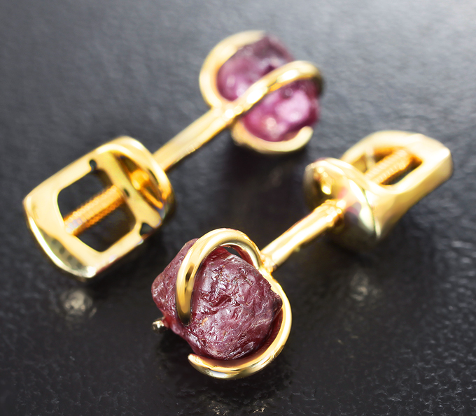 Вашему вниманию предлагается комплект (кольцо + пусеты) из желтого золота 585 пробы с необработанными рубинами! Вес комплекта 5,1 г.