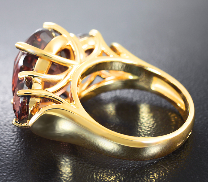 Вашему вниманию предлагается кольцо из желтого золота 750 пробы с цирконами! Диаметр дополнительной инкрустации 6 мм. Площадка 25 х 13 мм, высота 11 мм. Вес изделия 11,9 г. Размер 16,75. Ниже приводятся ювелирные характеристики крупного циркона.