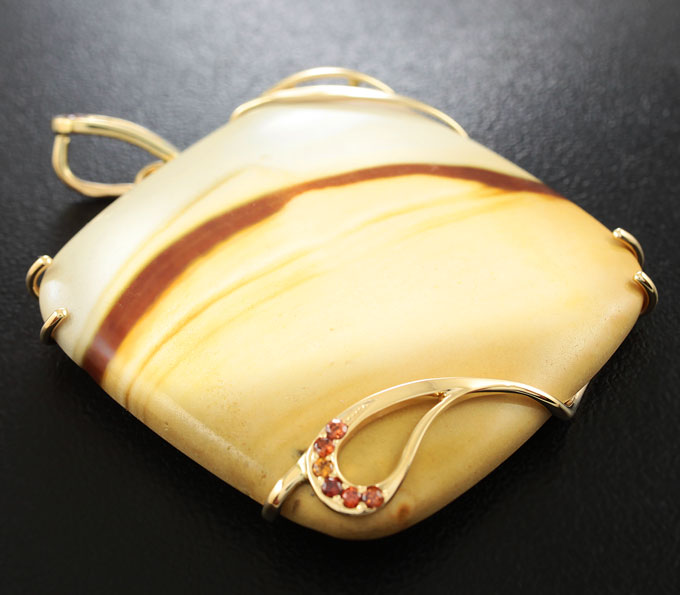 Кулон с пейзажной мадагаскарской яшмой и коньячными цирконами