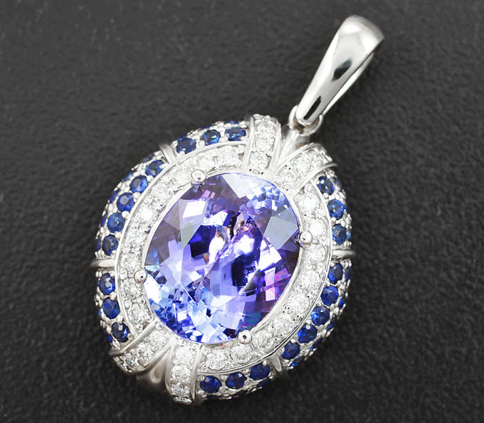 Кулон с топовым танзанитом, синими сапфирами и бриллиантами