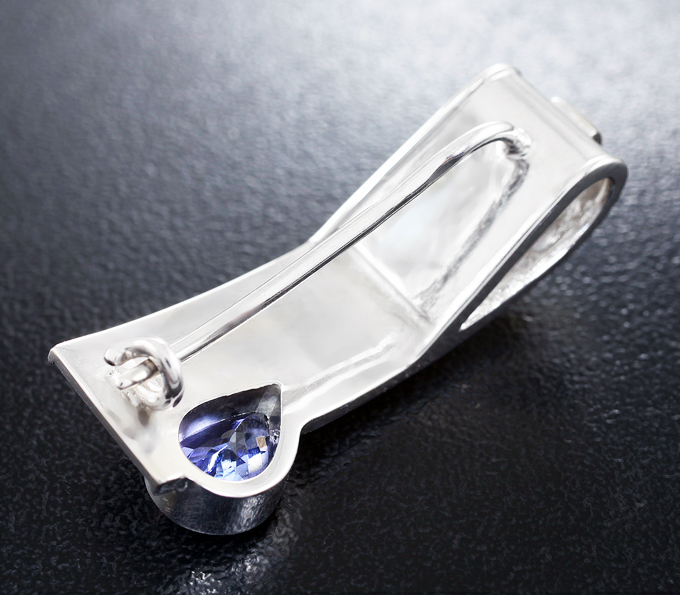 Вашему вниманию предлагается брошь-кулон из стерлингового серебра (925 проба) с танзанитом и бриллиантами! Изделие частично позолочено. Диаметр дополнительной инкрустации 1,5 мм. Площадка изделия 32 х 12 мм. Вес изделия 6,8 г. Ниже приводятся ювелирные характеристики танзанитом.