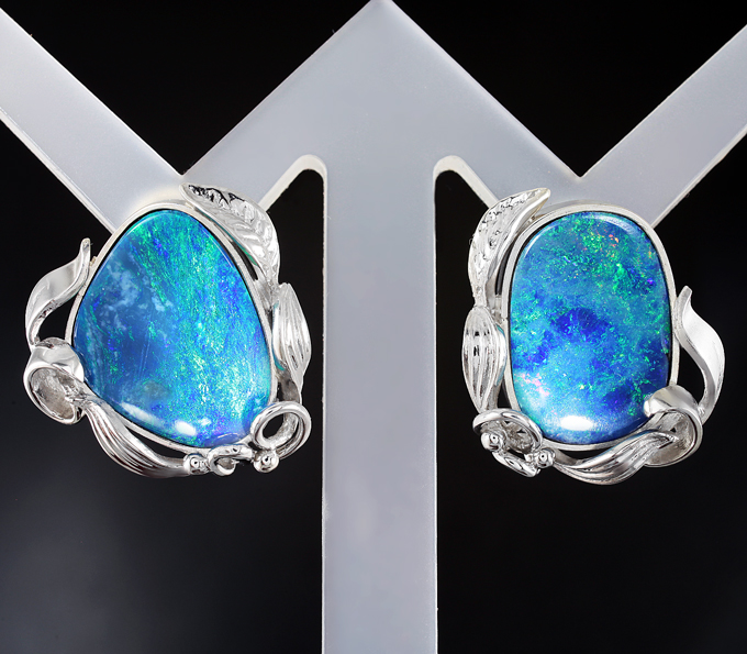 Вашему вниманию предлагаются серьги из стерлингового серебра (925 проба) с австралийскими дублет опалами! Площадка серег 20 х 20 мм. Вес пары 9,1 г. Ниже приводятся ювелирные характеристики вставок.