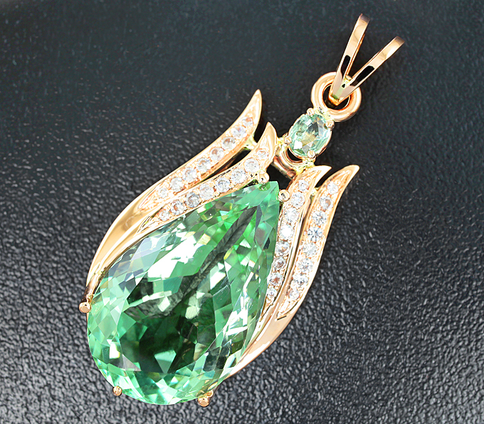 Вашему вниманию предлагается кулон из красного золота 585 пробы с зеленым аметистом, сапфиром и бесцветными цирконами! Размеры дополнительной инкрустации от 1,3 мм до 5 х 3 мм. Размеры кулона с петлей 45 х 19 мм. Вес изделия 8,5 г. Ниже приводятся ювелирные характеристики аметиста.