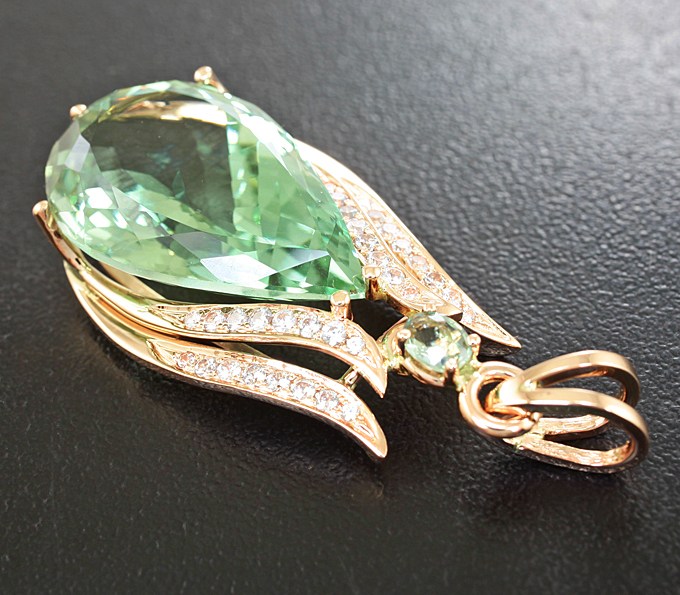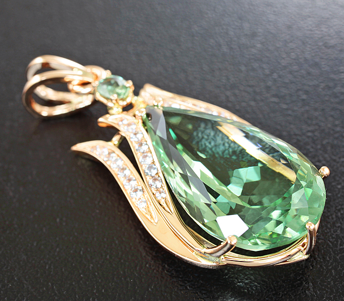 Кулон с зеленым аметистом, сапфиром и бесцветными цирконами