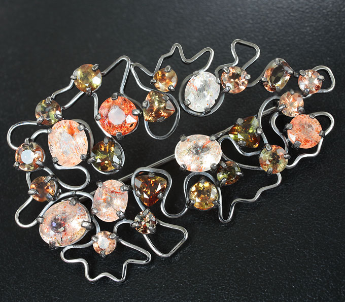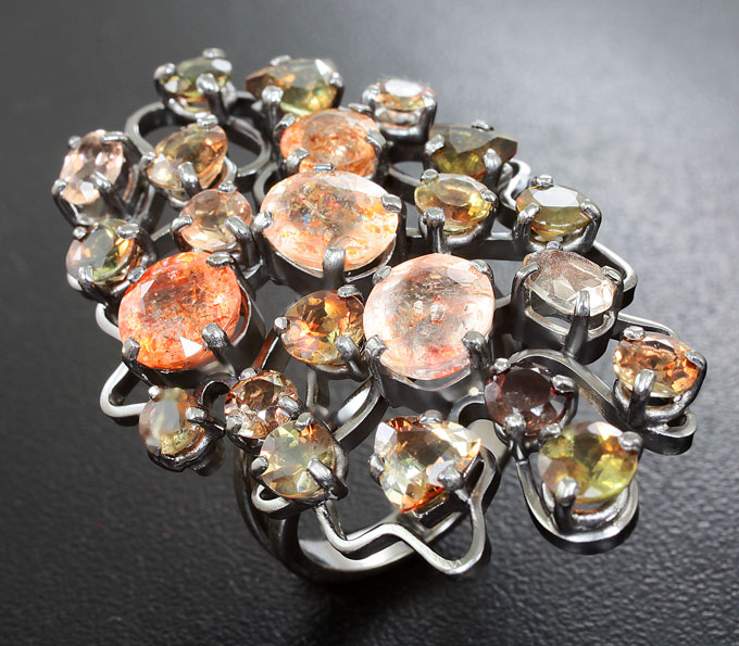 Вашему вниманию предлагается комплект (кольцо + брошь/кулон) из стерлингового серебра (925 проба) с солнечным камнем и андалузитами! Изделия с чернением. Вес комплекта 29,1 г.