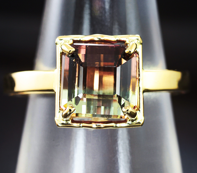 Вашему вниманию предлагается кольцо из желтого золота 585 пробы с полихромным турмалином! Площадка 10 х 9 мм, высота 7 мм. Вес изделия 3,7 г. Размер 18. Ниже приводятся ювелирные характеристики вставки.