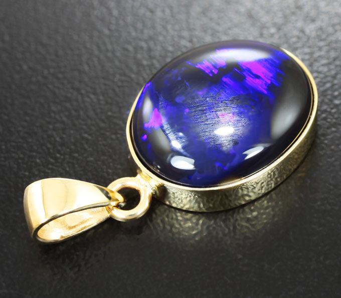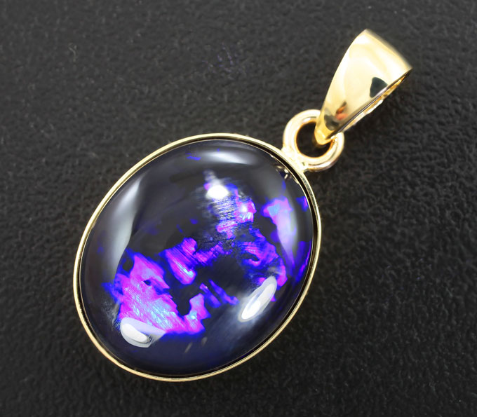 Вашему вниманию предлагается кулон из желтого золота 585 пробы с австралийским черным опалом! Основной цвет опалесценции: фиолетовый. Размеры кулона с петлей 29 х 15 мм. Вес изделия 3,8 г. Ниже приводятся ювелирные характеристики вставки.