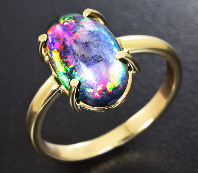 Вашему вниманию предлагается кольцо из желтого золота 585 пробы с кристаллическим черным опалом! Основные цвета опалесценции: красный, желтый и зеленый. Размеры вставок 12 х 8 мм. Площадка 12 х 8 мм, высота 5 мм. Вес изделия 2,2 г. Размер 16. Ниже приводятся ювелирные характеристики вставки.
