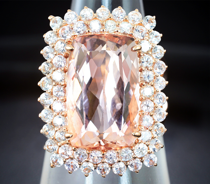 Вашему вниманию предлагается кольцо из розового золота 585 пробы с морганитом 7,5 карата и лейкосапфирами! Размеры вставок 2 мм и 16 х 10 мм. Площадка 25 х 19 мм, высота 9 мм. Вес изделия 10,6 г. Размер 16,75.