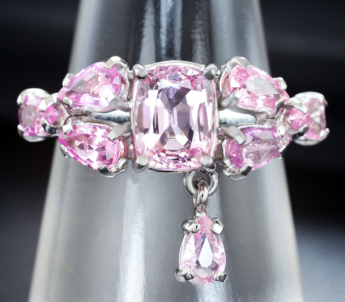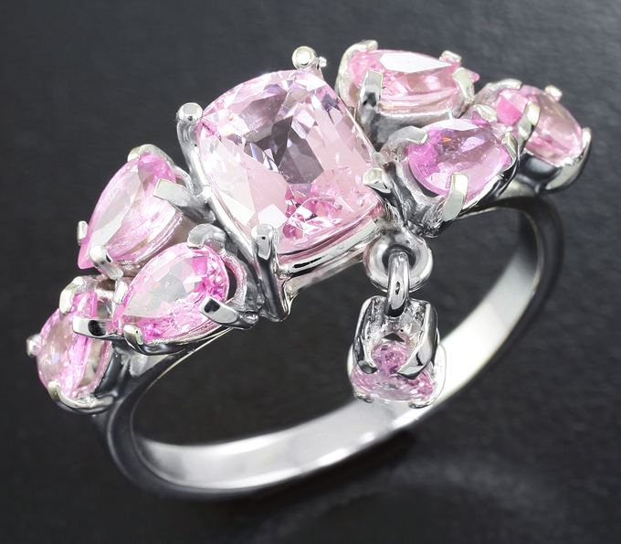 Кольцо с розовой шпинелью и пурпурно-розовыми сапфирами
